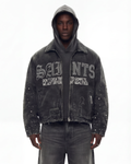 Cut in a relaxed straight silhouette, the pant maintains a structured drape while allowing natural movement. Subtle whiskering, fading, and abrasion marks further enhance the character of the wash. The back features oversized SAINTS lettering crafted through multi-layer embroidery, creating depth and contrast against the denim base.